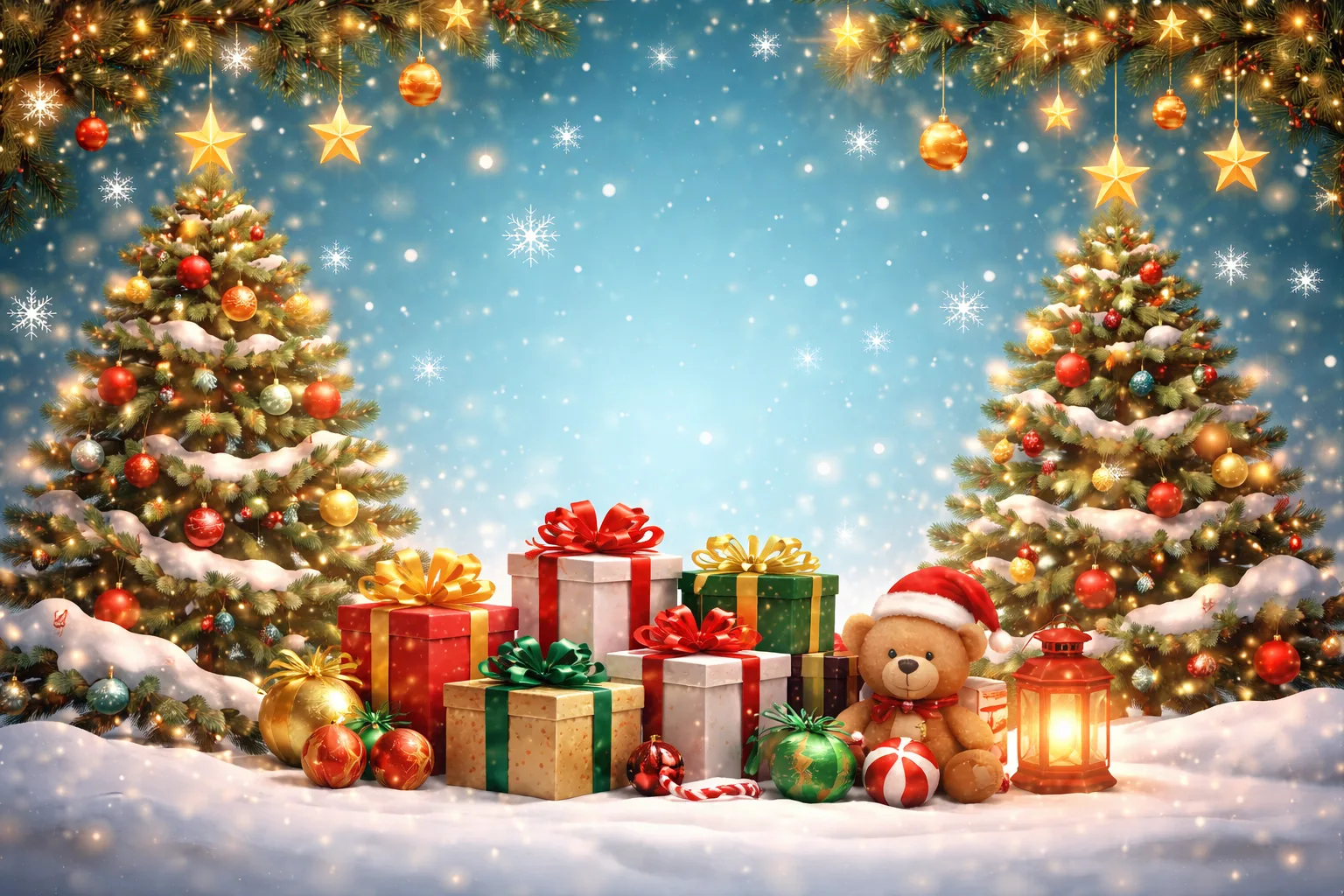 | Common Symbols | Evergreen trees, lights, wreaths, stars, and gift wrapping. |